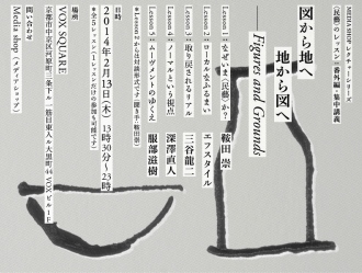 MEDIA SHOPで2012年に行われたレクチャーシリーズ「〈民藝〉のレッスン」(全8回)は、〈民藝〉を手がかりとして、多様な切り口から、社会と暮らしのあり方を検討しました。今回はその番外編・集中講義。「Figures and Grounds(図から地へ 地から図へ)」というテーマで連続トークセッションを行います。