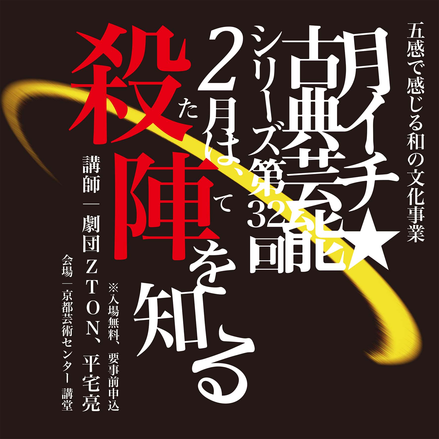 今回は、KAC Art Festival バラエティボックスの特別企画として、時代劇の乱闘・斬り合いといった立ち回りから、現代的なスタイルの活劇にいたるまで活用されている殺陣の魅力に迫ります。殺陣は、歌舞伎の「立ち回り」を略した「立ち」に由来すると考えられていますが、今や日本の芸能・舞台におけるアクションには欠かせない要素です。今回、講師として招くのは劇団ZTONと平宅亮さん。殺陣やダンスなどを折衷させた、独自の世界観の舞台を創り出す劇団ZTONは、今回特別に短い演目を披露します。平宅亮さんは、テレビや映画などでも殺陣指導を行っている演劇人です。平宅亮さんによるテレビと舞台の殺陣の違いに関する解説や、劇団ZTONの実演など、様々な角度から殺陣を知ることができます!