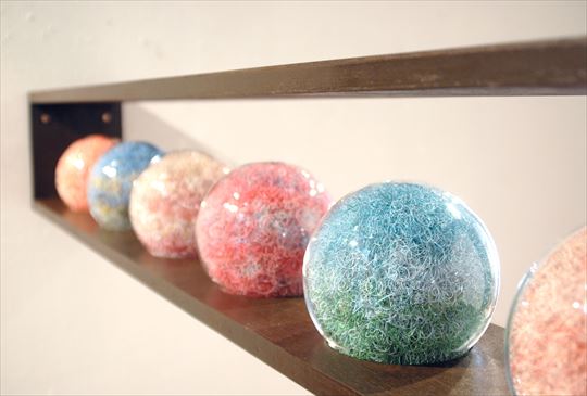 親から初めて与えられたタオルに“個”を意識した記憶をたよりに展開した「アライザラシ(2014)」、幼少の頃の記憶の中の、祖父母の家にあった物の色を再現する試み「昔のワタシの小さなハナシ(2013)」など。