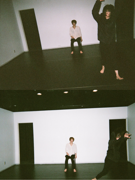 二人のダンサー、倉田翠と松尾恵美。彼女達は学生時代から現在に至るまで、共にダンス作品を作ってきた。今回、演出の村川は彼女達がかつて踊った振り付けに着目し、膨大な過去の振り付けの中からいくつかの振り付けを選び取り、現在の彼女達に踊らせる。昔話を語りだす時のようにかつての振り付けを踊る時、彼女達自身の記憶も同時に蘇ることになるだろう。また、時の流れは物質的な変化を与え、体力や運動能力の劣化を意識せざるを得ない。過去の振り付けに踊らされる現在の彼女達は、葛藤や矛盾、苛立の渦に巻き込まれながらも、その感情が起爆剤となり自らの踊る意思を獲得するだろう。同時に、かつての自分達の踊りにさよならを言い続ける行為となるのかもしれない。それは、今が今まさに終わっていく終着の起点としての現在時を想起させる試みに繋がるのかもしれない。