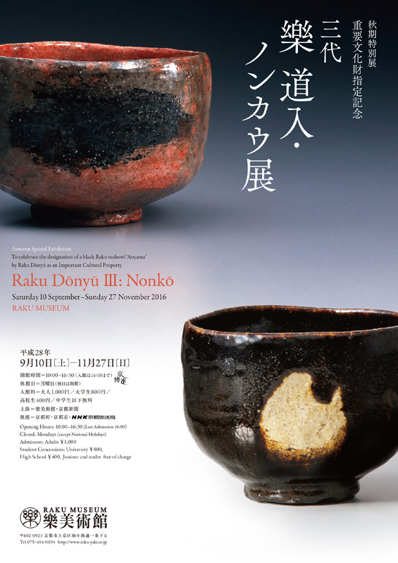 秋期特別展 重要文化財指定記念 三代 樂 道入・ノンカウ展